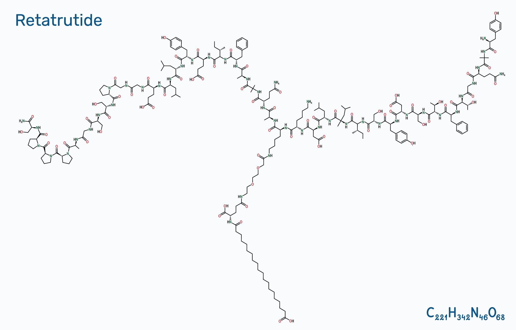 High-purity Retatrutide supplied as a lyophilized peptide for laboratory research and analytical applications.Retatrutide is a synthetic peptide studied for its interaction with GLP-1, GIP, and glucagon receptors, making it of interest in research related to metabolic regulation pathways.
